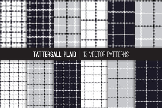 Pink, Gray, Black and White Tattersall & Windowpane Plaid Vector Patterns. Trendy Fashion Textile Print. Pastel Color Backgrounds. Small to Large Scale Check Textile Prints. Pattern Tile Swatches Incl