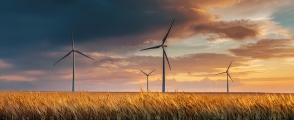 The majestic wind turbines spinning elegantly against a colorful sunset sky.