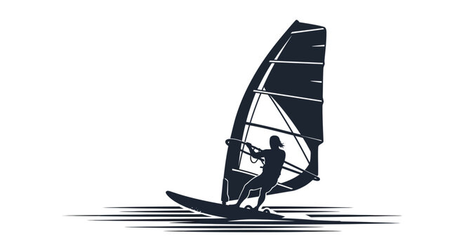 A striking image of a windsurfer gracefully riding the waves a captivating silhouette