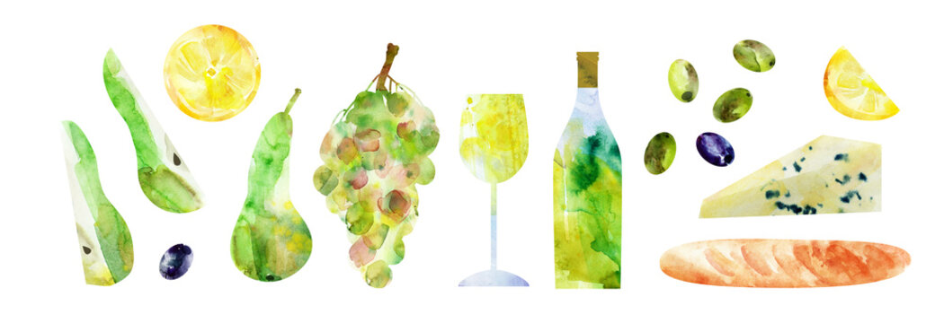 Watercolor wineglass clipart collection. Wine watercolor illustration.