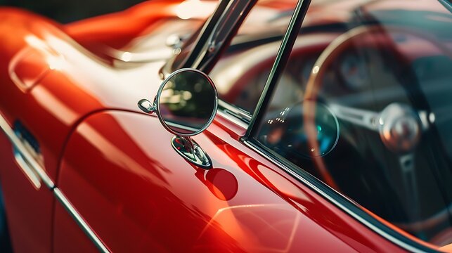 Close up of sports car wing mirror