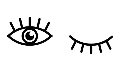 Eye icon. Hand drawn eye vector icon. Open and winking eyes on white background.
