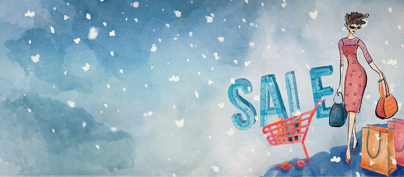 Winter Sale Snow Banner Retro Vintage Style. Simple Background Vector Illustration. Suitable for poster, cover, web, social banner, or flyer