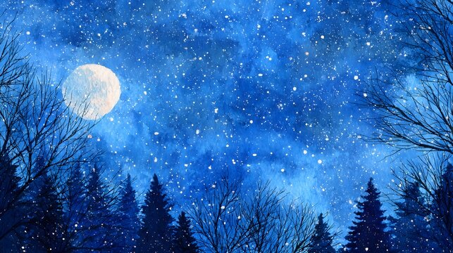 Holiday greeting in serene abstract winter forest