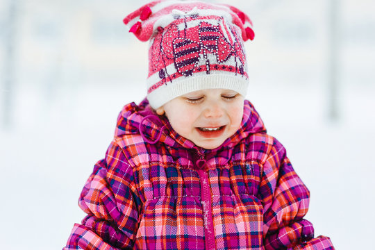10 yeras boy in winter snow has fun in warm cloth. Cold weather concept close up photo