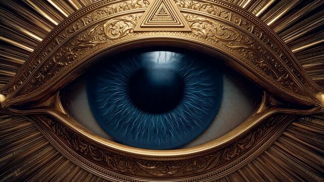 Intricate all-seeing eye with ornate golden details, symbolizing knowledge and mysticism. Ideal for spirituality, mystery, or ancient wisdom themes.