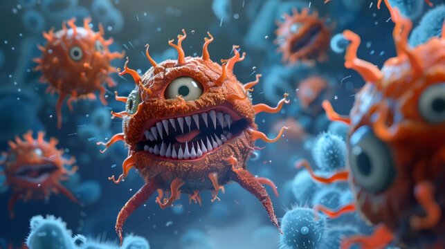 Creative illustration of virus cells wearing sunglasses, symbolizing fun and unique take on viral concepts. Vibrant and imaginative design.