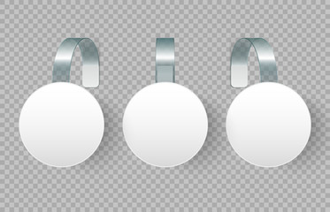 Realistic white blank advertising wobblers isolated on transparent background. Round wobbler with corner. Sale discount tags. Mockup template for design. Concept for promotion sales, supermarket price