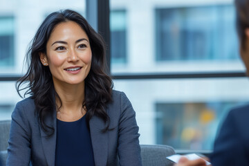 Face, recruitment or businesswoman in an office, job interview or meeting process at human resources. Vacancy, hiring opportunity or hr manager listening to candidate in a startup agency or company