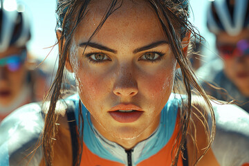 Focused cyclist riding with determination on track