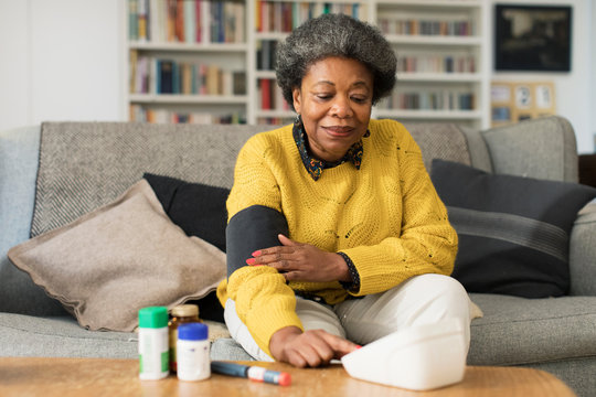 Happy tanned mature beautiful woman blonde and white blouse in the field on a sunny day, lifestyle