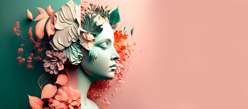 Women's Day poster with silhouettes women's faces in paper cut and copy space,  Females for feminism, independence,activism for women .generative AI