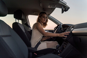 Young woman sitting in a car