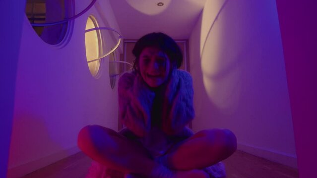 Angry woman screams against orange background