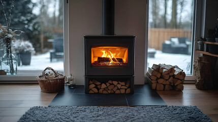 biomass - wood pellets burning. biofuel and renewable energy. copy space
