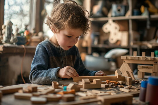 A serene woodworking workshop with hand tools and woodcraft projects, Artisanal carpentry craftsmanship style, photo of