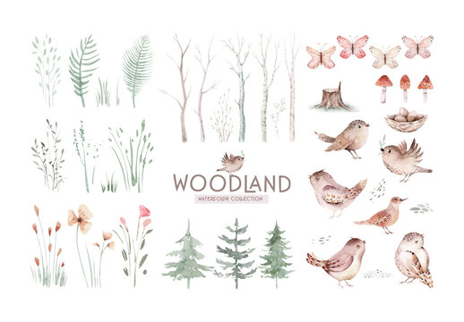 Woodland Animals watercolor forest illustration baby illustration