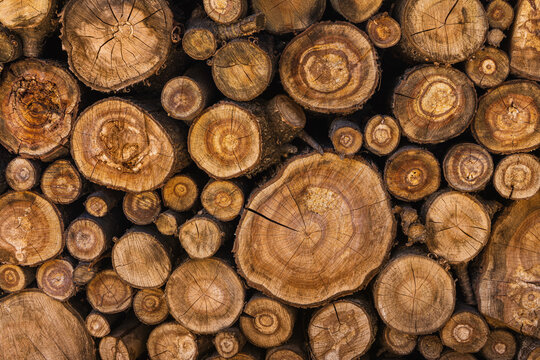 Wood logs stacked background flat with natural light for background