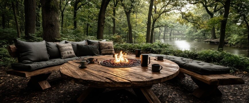 Cozy wooden table in a warm, inviting bar setting, perfect for dining or socializing in a relaxed atmosphere.