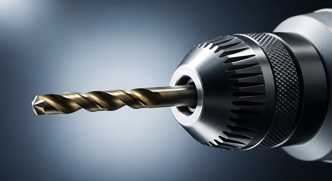 Electric drill close-up featuring metal drill bit for woodworking projects