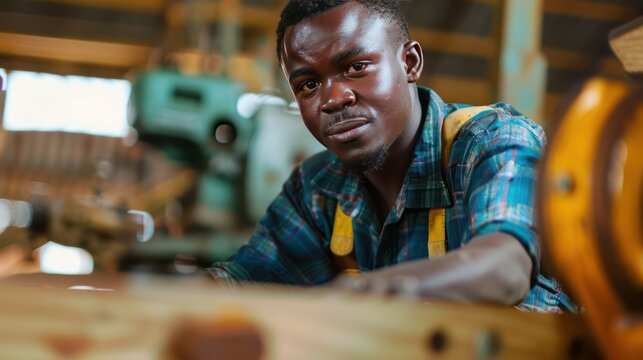 Bearded Carpenter Smoothing Wood With Tool in Workshop, Demonstrating Craftsmanship and Traditional Skills for Vocational Training Programs