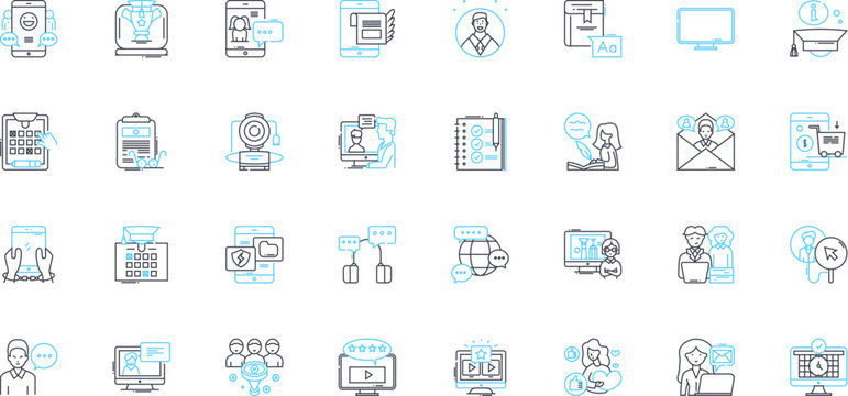 Writer linear icons set. Wordsmith, Penman, Scribe, Storyteller, Author, Novelist, Poet line vector and concept signs. Wordslinger,Manuscript,Scripter outline illustrations