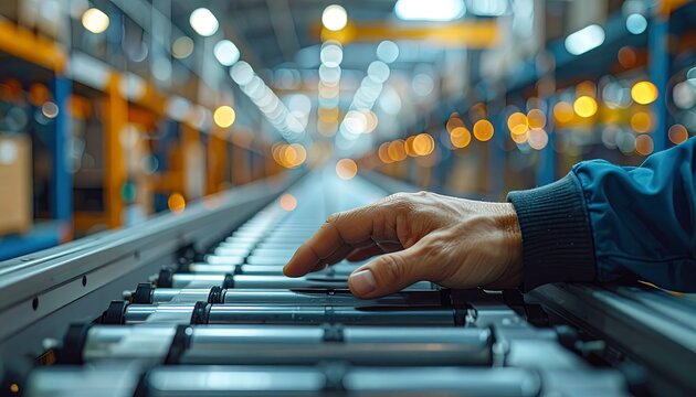 Laborer sorting through lithium ore on a conveyor belt at a processing plant. Featuring sorting work