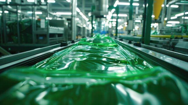 Industrial factory complex heavy machinery conveyor belt mining production processing plant blue sky