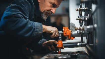 Repairman working at the factory. Close-up of a repairman using a screwdriver.