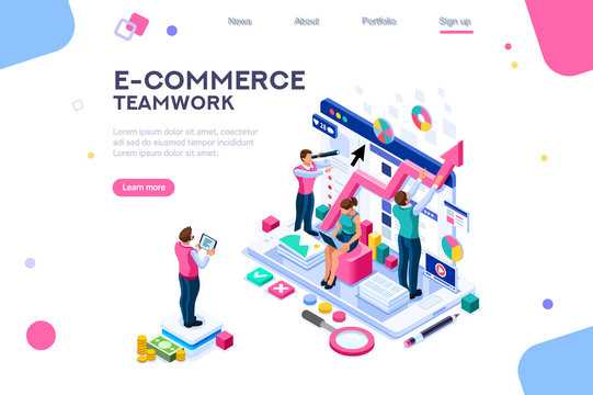 Teamwork career on analysis, management, consulting and marketing. Modern solution for business app and data. Template for project navigation workflow or menu. Software for e-commerce, responsive ui.