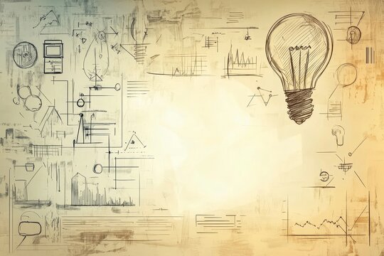 Vintage Workflow Sketches with Lightbulb on Sepia Background