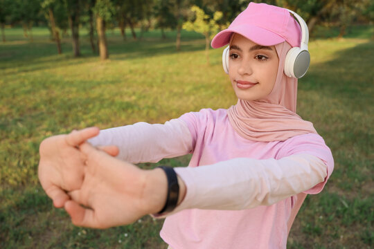 Woman jogging in park with inspirational fitness quote