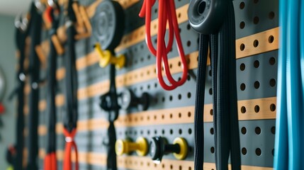 Make fitness your favourite habit. Studio shot of a variety of workout equipment and PPE on a wooden floor.