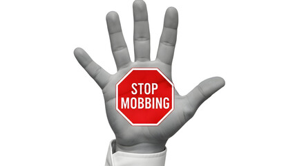 Hand displaying a stop mobbing sign symbolizing antibullying and harassment prevention with a clear message against workplace abuse and promoting a safe environment for all