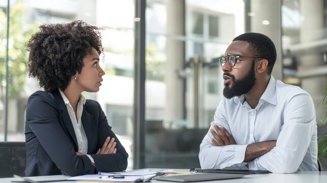 Boss screaming at employee in office. Toxic work environment