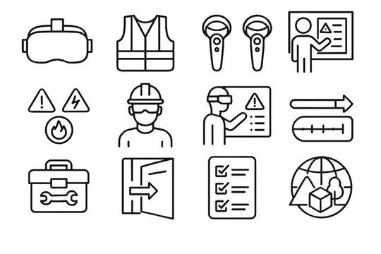 Vr emergency environment avatar icon vector tracker icons safety toolbox headset workplace