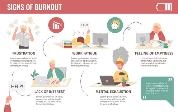 A young woman feels weak and tired. Low energy level. Emotion exhaustion and burnout at work. Vector flat illustration isolated on the white background.