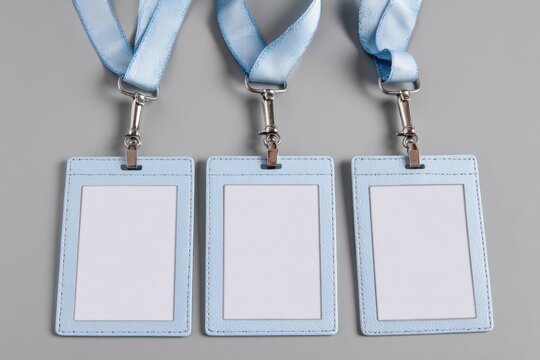 Light blue lanyards with blank name tags ready for an event or conference for attendees to display their identification clearly