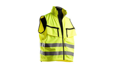 Yellow Safety Vest. A photograph showcasing a yellow safety vest highlighting its visibility and importance in hazardous environments. on White or PNG Transparent Background.
