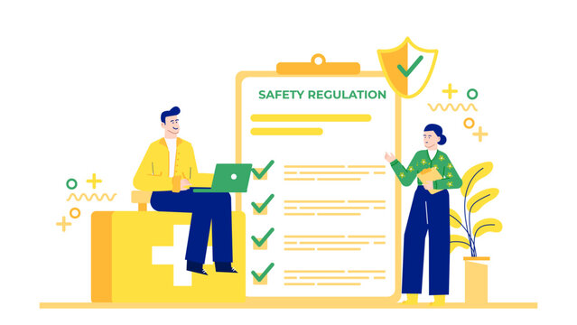 Safety regulation checklist. Workplace safety and office health standards, perfect for safety presentations, workplace training materials, and regulatory compliance concepts.