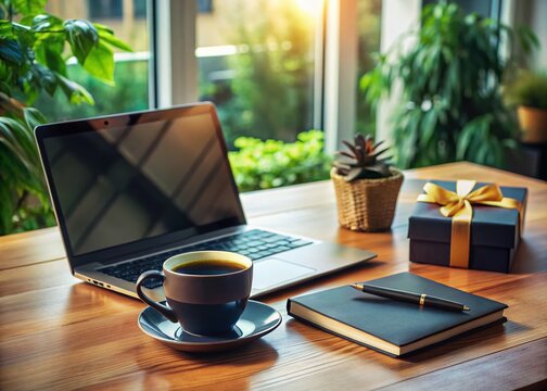 Cozy Workspace Laptop, Coffee, and Notebook for Creative Work