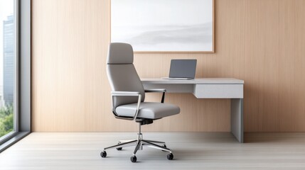 modern workroom featuring a sleek desk with a laptop