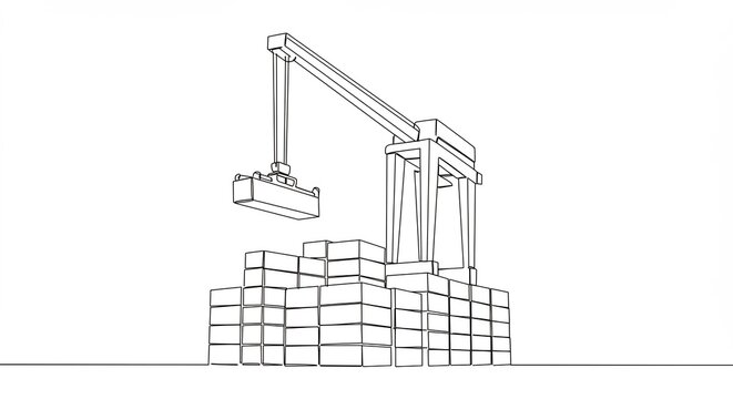 Construction Crane with Stack of Blocks on Construction Site in Black and White Line Art