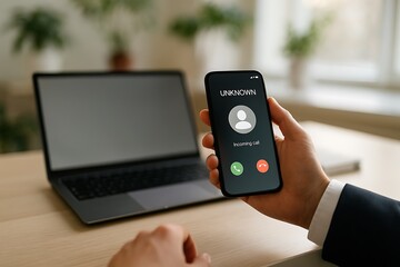 Hand using smartphone promoting digital marketing concept