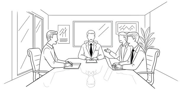 Serene modern office illustration depicts calm workspace at night a commercial design concept