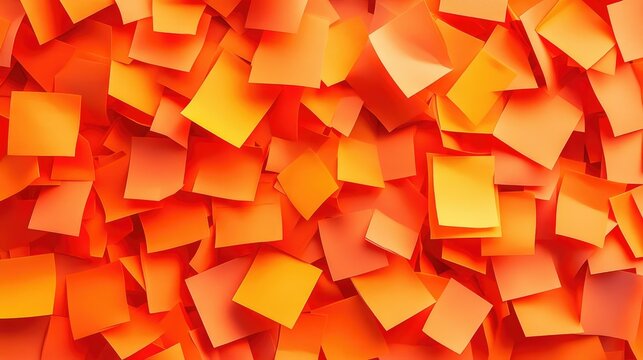 Bright orange sticky notes spread across a plain white background, emphasizing creativity and brainstorming