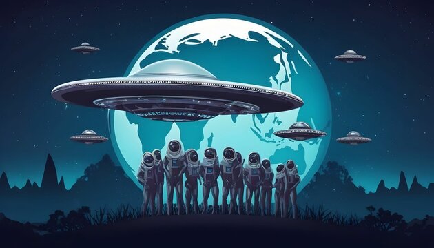 world UFO day 2 July Alien spaceships Arrival vector poster