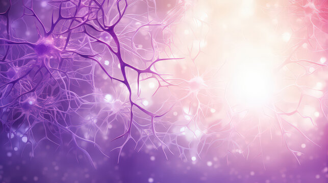 autism, Stroke, Epilepsy and alzheimer awareness, seizure disorder, stroke, ADHD, world mental health day concept. Alzheimer banner with nerve cell , light purple background
