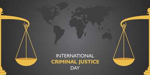 Vector illustration of World Day for International Justice, with world map and scales of justice.