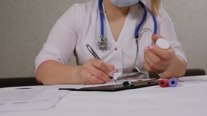 Physician writing prescription to diabetes patient at hospital. World diabetes day. Health care medical concept.